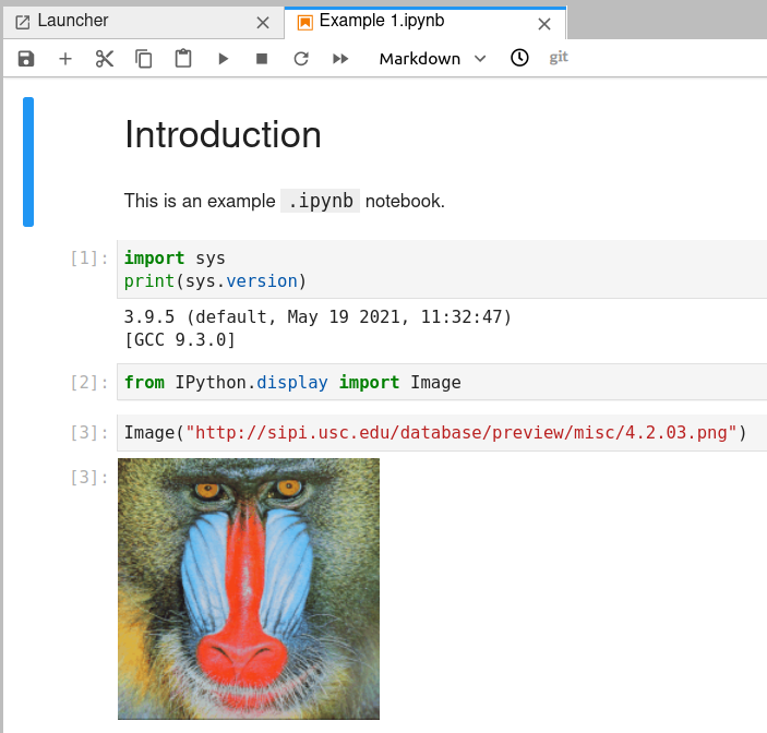 Example Jupyter notebook created on JupyterLab